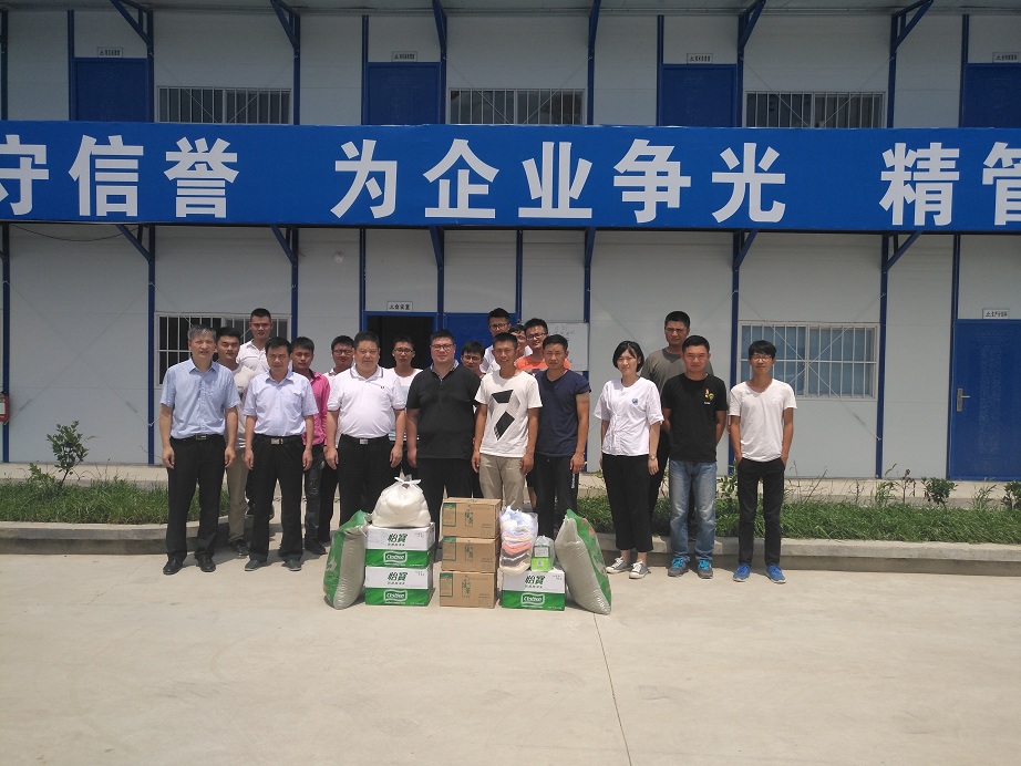 烈日炎炎,熱浪滾滾。連日來,淮北氣溫節(jié)節(jié)攀升,7月22日正值大暑時節(jié),公司董事長、總經理王軍邦,紀委書記、工會主席李寬旭,總工程師吳繼成一行,來到淮北和諧新家園項目部“送清涼”,親手將一袋袋綠豆,一條條毛巾,一盒盒仁丹、清涼油,一箱箱礦泉水等防暑降溫物品,送到頂著高溫,堅守在生產崗位的項目員工手中,給奮戰(zhàn)在一線的員工們送上沁人心脾的絲絲涼爽和無微不至的親切關懷。