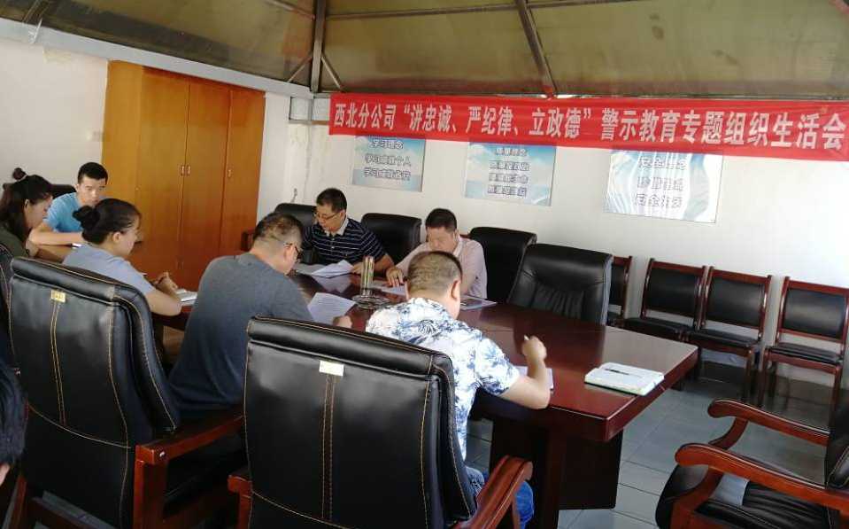 7月25日上午,西北分公司黨支部組織召開了“講忠誠、嚴紀律、立政德”警示教育專題組織生活會。分公司領導班子成員、支部黨員參加了會議。公司董事長、總經(jīng)理、黨委副書記王軍邦,總會計師張元斌蒞臨指導。