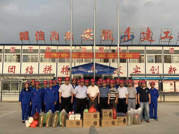 牛曙東一行一到工地就深入施工現(xiàn)場(chǎng)察看項(xiàng)目安全防護(hù)設(shè)施、文明施工、工程進(jìn)展情況,還仔細(xì)詢問員工的工作、生活和項(xiàng)目黨建工作等。為奮戰(zhàn)在高溫中的一線職工送去了礦泉水、綠豆、毛巾等防暑藥品等慰問品,關(guān)切職工工作和身體狀況,深入到職工宿舍、食堂實(shí)地查看職工居住和生活條件。詳細(xì)了解高溫期間工作安排情況,并向堅(jiān)守在高溫一線的職工表示親切慰問和感謝。牛曙東指出,連續(xù)高溫天氣,一線職工始終堅(jiān)守在崗位,落實(shí)高溫天氣作業(yè)安全防范措施,做好當(dāng)前防暑降溫工作,防止職工中暑,確保人身安全。