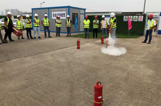 演練正式開(kāi)始前,項(xiàng)目部全體人員在“安全消防演練”的紅色橫幅上鄭重的簽下了自己的名字。演練按預(yù)定方案進(jìn)行,項(xiàng)目部安全員闡述了本次演練的目的和意義,介紹基礎(chǔ)的火災(zāi)消防知識(shí),點(diǎn)明掌握火災(zāi)逃生的基本方法。項(xiàng)目管理公司安全工程師針對(duì)項(xiàng)目部可能存在的火災(zāi)隱患做了重點(diǎn)闡述,并指出項(xiàng)目部可能發(fā)生火災(zāi)的地點(diǎn)主要為生活區(qū),重點(diǎn)強(qiáng)調(diào)各班組長(zhǎng)在生活區(qū)要做好宣傳帶頭作用,將火災(zāi)隱患扼殺在萌芽之中。項(xiàng)目技術(shù)負(fù)責(zé)人李冬現(xiàn)場(chǎng)講解并示范了常見(jiàn)的手提式干粉滅火器的使用方法,而后參演人員親自體驗(yàn)了如何正確的使用滅火器。消防演練緊張有序,安全保證工作到位,演練達(dá)到預(yù)期效果。