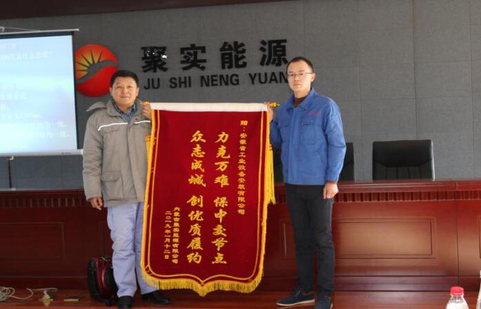 2019年1月14日,安徽安裝承建的內(nèi)蒙古聚實能源有限公司焦化升級改造生產(chǎn)清潔化學品項目,克服工期緊、任務重、施工難度大等諸多困難,安全、高效、優(yōu)質(zhì)的圓滿完成了工程建設任務。業(yè)主內(nèi)蒙古聚實能源公司總經(jīng)理張春軍向公司贈送內(nèi)容為“力克萬難 保中交節(jié)點;眾志成城 創(chuàng)優(yōu)質(zhì)履約”的錦旗。