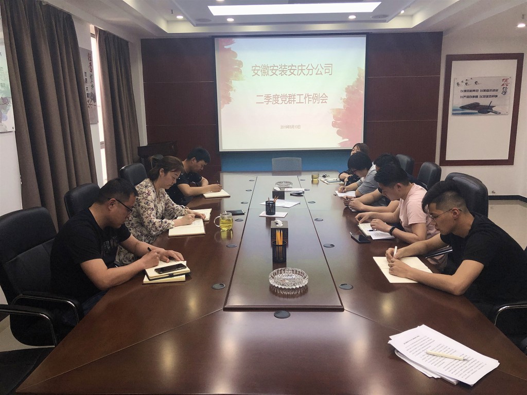 5月13日下午,安慶分公司召開第二季度黨群工作例會,分公司黨群工作領導、部門負責人及相關工作人員參加了會議,會議由綜合辦主任董玉娟主持。