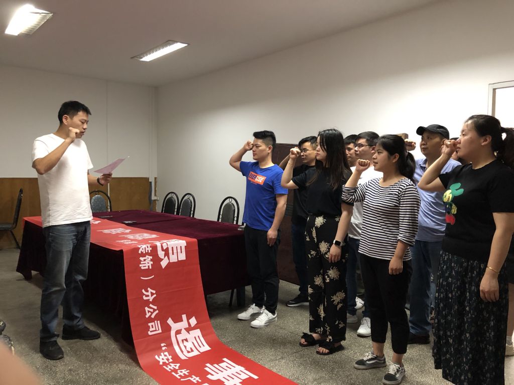 上午9點,分公司副經(jīng)理李冬帶領分公司機關全體員工開展宣誓簽名活動。在會上大家舉起右手,莊嚴宣誓,并在橫幅上鄭重簽名。通過此次活動,更加激發(fā)我們每一個人的安全意識,讓我們更好的認識到安全的重要性和必要性,有力地提升分公司安全管理水平,讓“安全”二字深深的烙印在每一名員工的心中,做到“安全在身邊,你我緊相連”,認識到安全與生活緊密相關。