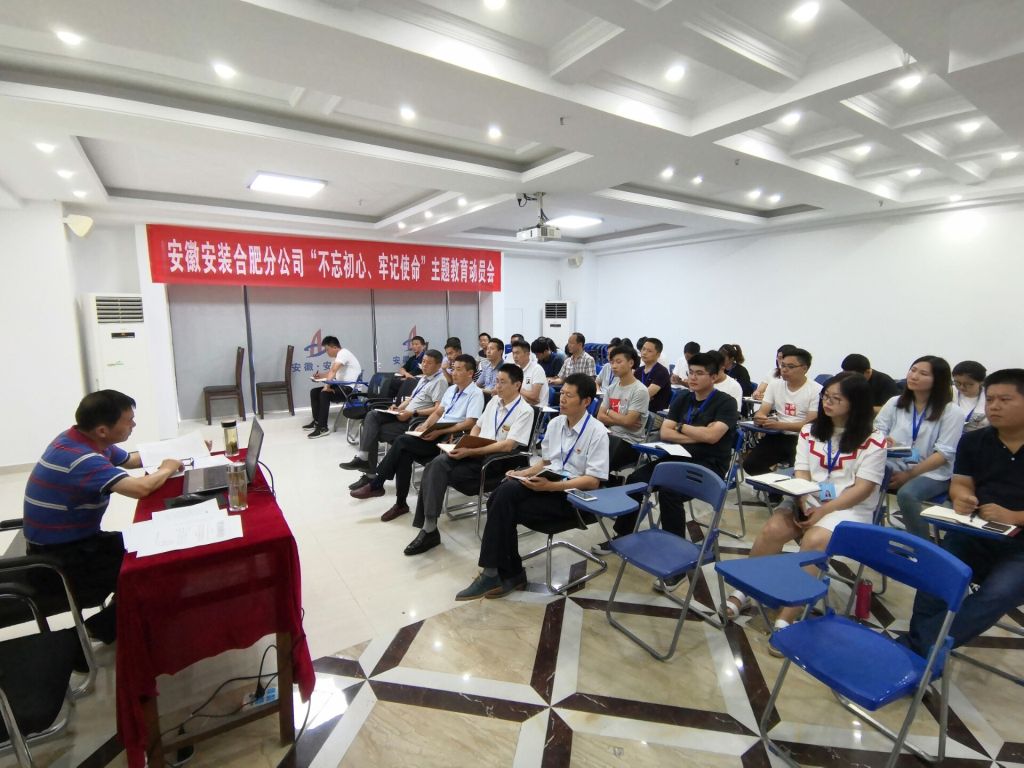 為深入貫徹落實習近平新時代中國特色社會主義思想,為開展“不忘初心,牢記使命”主題教育做好充分思想準備,6月28日上午,公司紀委書記、工會主席李寬旭應邀來到合肥分公司,為分公司黨支部黨員上了一堂“不忘初心,牢記使命”主題教育黨課。分公司領導班子、支部全體黨員、入黨積極分子及機關部門全體人員參會。