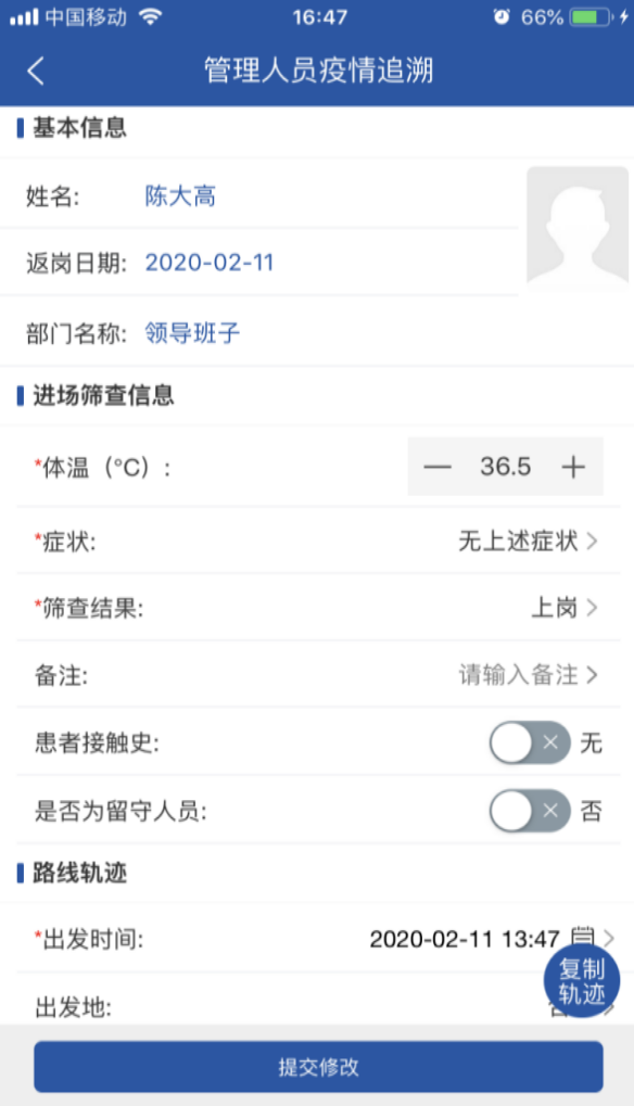 為嚴(yán)格落實(shí)復(fù)工復(fù)產(chǎn)和屬地防控責(zé)任的工作要求,有效防控疫情的輸入和擴(kuò)散,阜陽市潁東區(qū)中醫(yī)院建設(shè)ppp項(xiàng)目全面推行“返崗復(fù)工疫情防控系統(tǒng)”APP,借助這一平臺(tái)確保項(xiàng)目部實(shí)時(shí)、準(zhǔn)確、有效地掌握現(xiàn)場(chǎng)人員的健康情況,助力疫情防控工作。