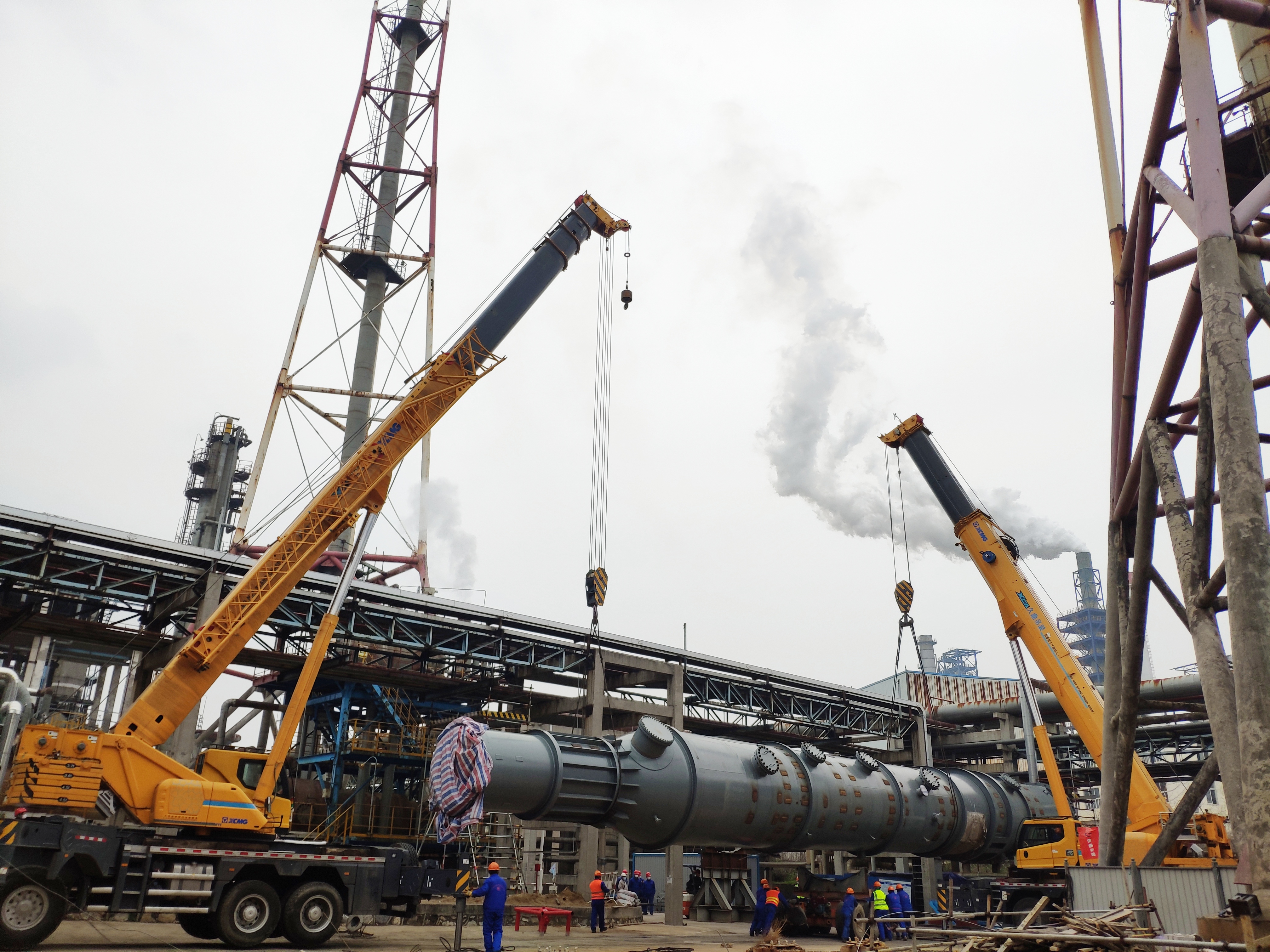 此次脫硫塔下段倒運(yùn)是“Ⅰ、Ⅱ硫磺回收裝置增設(shè)煙氣后堿洗流程工程”的重要節(jié)點(diǎn),任務(wù)的順利完成也是安慶石化后堿洗項(xiàng)目2020年的開門紅,為下一階段脫硫塔組對(duì)和工藝管道安裝創(chuàng)造了有利條件,也一掃新冠肺炎疫情帶來(lái)的陰霾,鼓舞了項(xiàng)目部的士氣,獲得業(yè)主、監(jiān)理們的高度贊許和肯定。