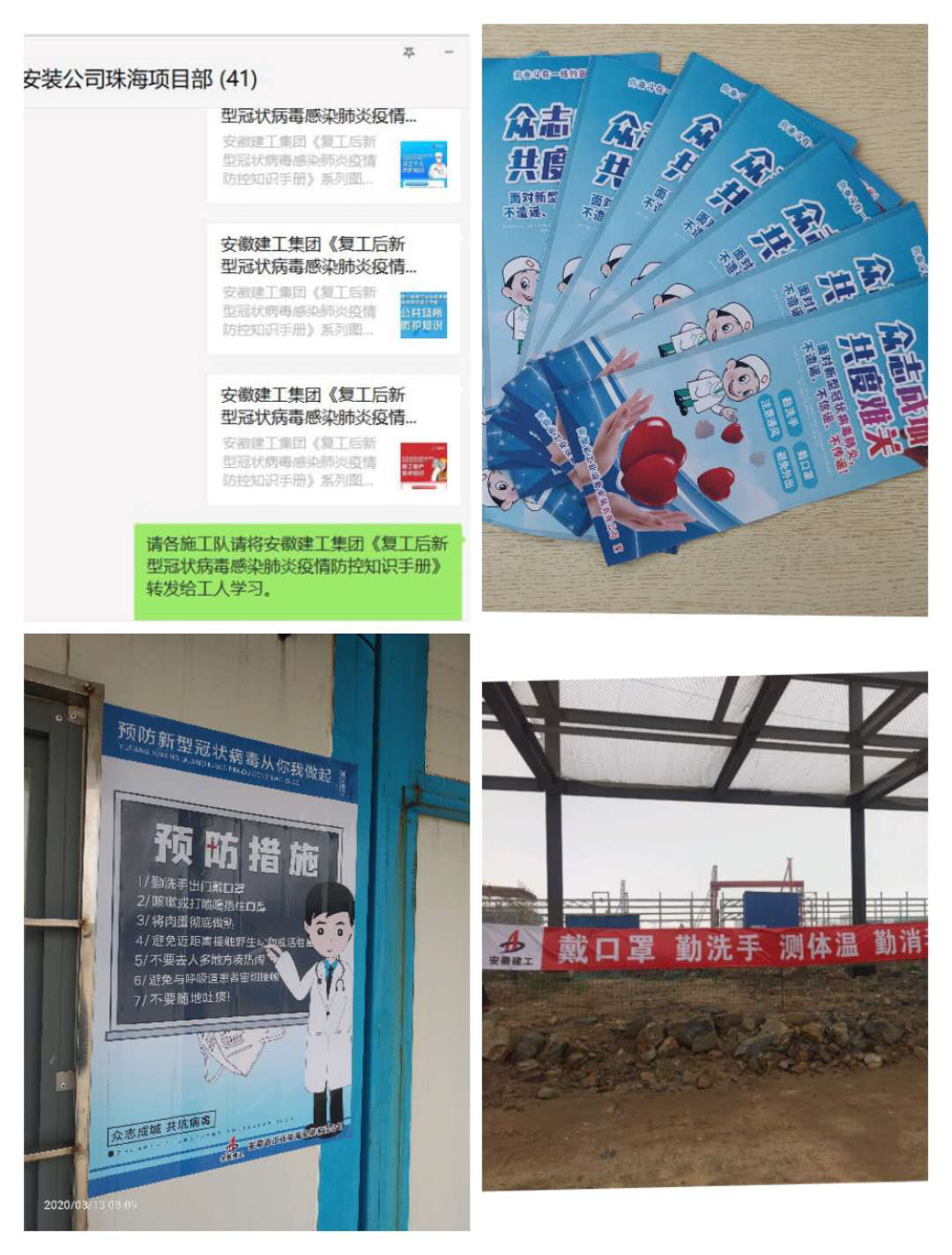 做好疫情宣傳,做好疫情指導(dǎo)。項目部通過微信群、印制宣傳手冊、懸掛條幅等提高防控意識,形成全員重視自身防護(hù)的良好氛圍。