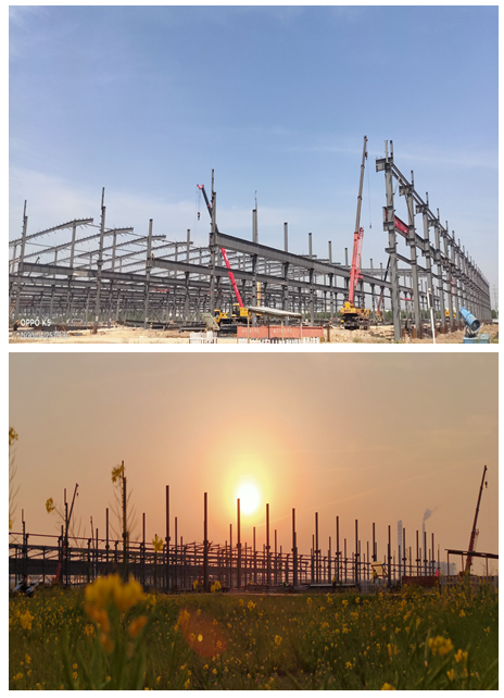 為進(jìn)一步調(diào)動(dòng)參建人員的積極性和創(chuàng)造性,分公司組織開(kāi)展項(xiàng)目“大干90天”勞動(dòng)競(jìng)賽,有效形成了一片“比、學(xué)、趕、幫、超”的火熱生產(chǎn)局面。盡管3月底持續(xù)陰雨天氣,但絲毫沒(méi)有影響到月施工進(jìn)度,2#車(chē)間整體框架已全部按時(shí)間節(jié)點(diǎn)圓滿完成。目前,1#車(chē)間安裝正在高速推進(jìn)。