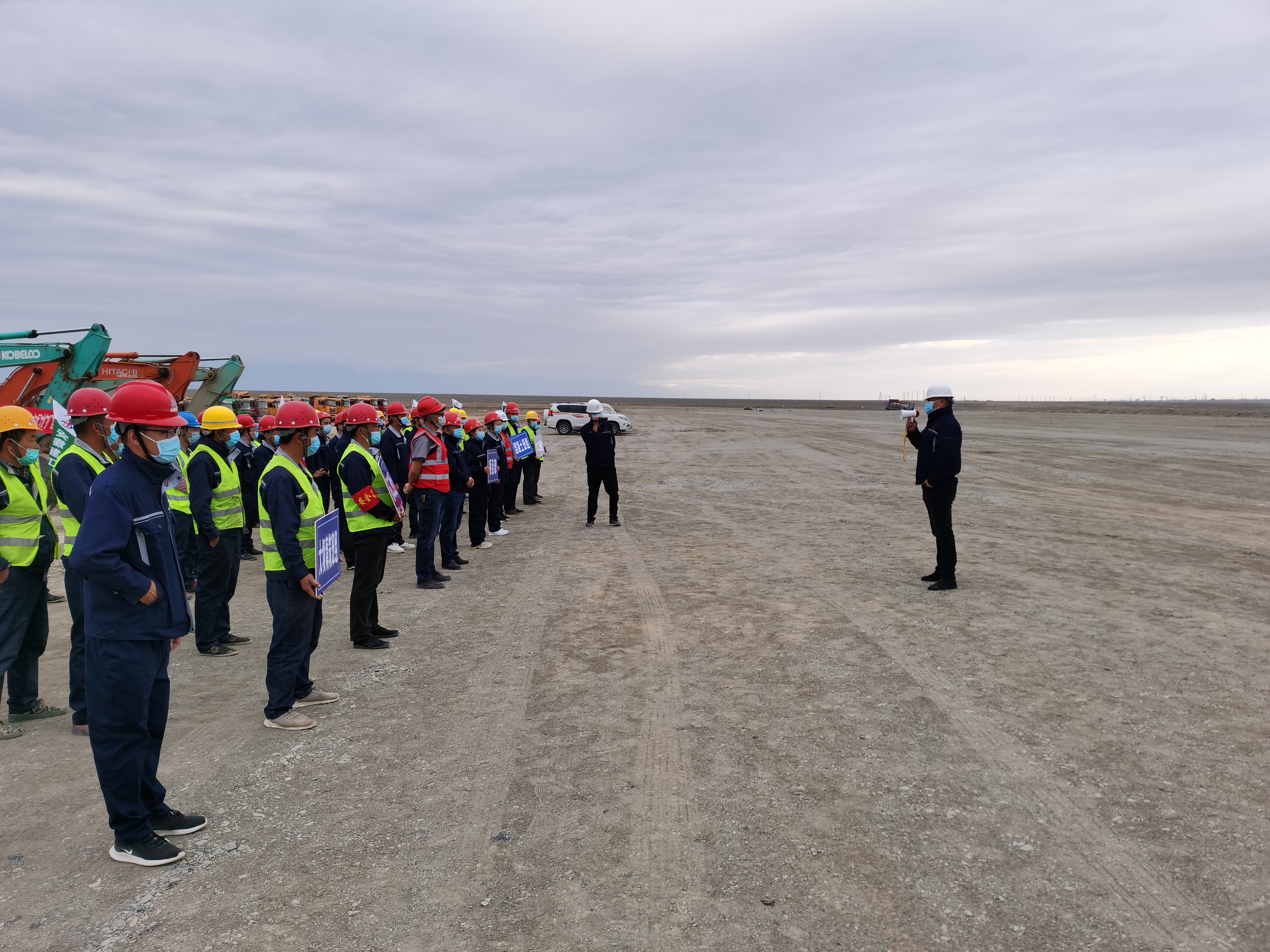 由于疫情影響,項目開工日期延遲近兩個月,為進一步調動參建人員的積極性和創(chuàng)造性,5月6日,項目部開展“四比四創(chuàng)、大干90天”勞動競賽活動,比施工進度,創(chuàng)最快建設速度;比工程質量,創(chuàng)優(yōu)質工程;比安全文明,創(chuàng)安全生產無事故;比成本效益,創(chuàng)良好企業(yè)形象。以競賽促生產、促安全、促管理、促效益、促發(fā)展,有效形成“比、學、趕、幫、超”的火熱生產局面。5月份的烏蘇市,白天氣溫已達三十度以上,盡管如此,每一位參建人員每天堅持工作十四個小時,偌大的施工現場,近百輛工程機械緊張作業(yè),挖掘機、推土機、壓路機的轟鳴聲震耳欲聾、重型卡車來回穿梭蕩起滾滾煙塵......截至目前,蓄水池壩體填筑已完成232700m3,完成產值約3000萬元,實現節(jié)點任務滿產超產,切實做到“兩手都要抓、兩手都要硬、兩戰(zhàn)都要贏”。