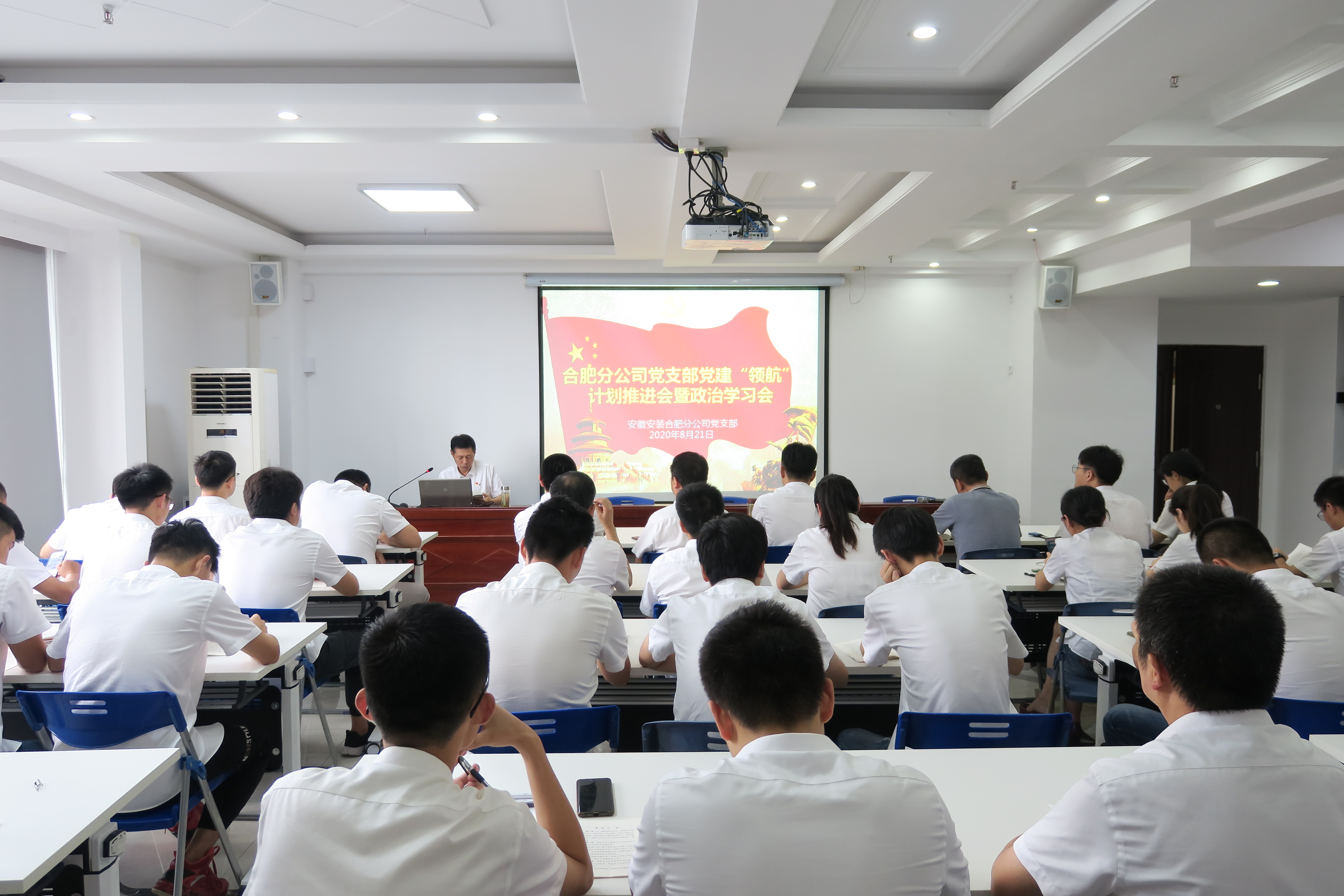 為深入貫徹落實習(xí)近平新時代中國特色社會主義思想,推進合肥分公司黨建“領(lǐng)航”計劃實施,8月21日下午,合肥分公司黨支部組織開展黨建“領(lǐng)航”計劃推進會暨政治學(xué)習(xí)會。分公司全體黨員、團員,機關(guān)職工、在肥項目人員等參與會議,會議由支部書記胡迎東主持。