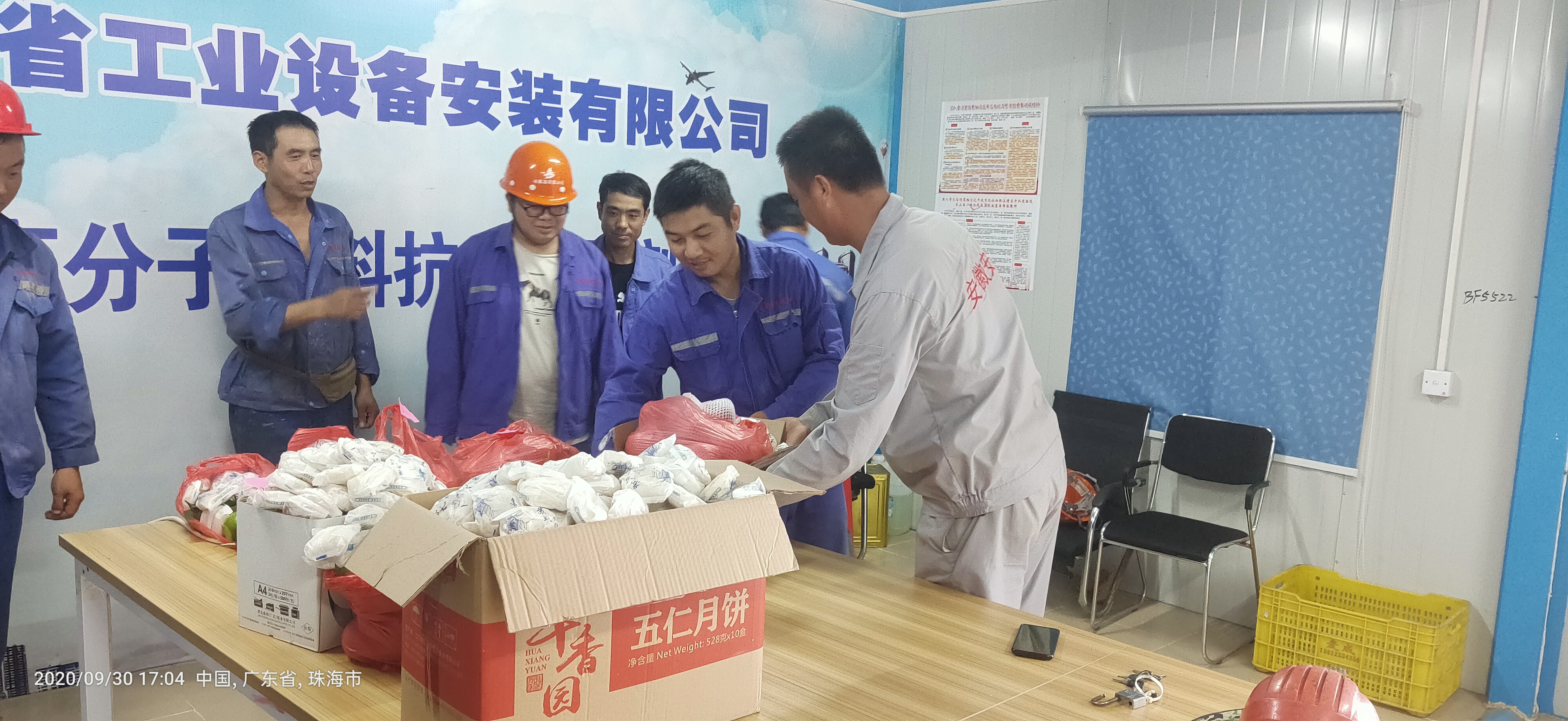 930日,在2020年中秋節(jié)國(guó)慶節(jié)“雙節(jié)”來(lái)臨之際,西北分公司珠海利安隆項(xiàng)目部組織開(kāi)展了“雙節(jié)”送溫暖活動(dòng)——為仍?shī)^斗在一線項(xiàng)目建設(shè)者們送上了一份節(jié)日的祝福。