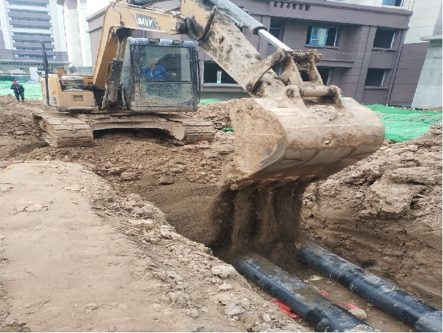 漢城源筑書香苑供暖工程項目部位于江蘇省徐州市沛縣漢城源筑項目書香苑小區(qū),施工范圍包括:書香苑熱力環(huán)網(wǎng)(一次環(huán)網(wǎng)、二次環(huán)網(wǎng))、熱交換站及自動化控制系統(tǒng)(含PLC全套自控系統(tǒng))、管道連接、所有與市政及單體樓棟對接檢修井等圖紙范圍內(nèi)全部內(nèi)容,以及與紅線外市政管網(wǎng)連接等;合同價1015.37萬元。2020年8月25日正式進(jìn)場施工后,項目團(tuán)隊嚴(yán)格按照合同施工節(jié)點(diǎn)抓生產(chǎn)、保任務(wù),尤其是10月-11月初,全體參建人員不畏艱難、逆勢而上,堅持白加黑、5+2的連續(xù)作戰(zhàn)模式,管理人員靠前指揮、作業(yè)人員并聯(lián)推進(jìn),只見挖掘機(jī)迅速掘進(jìn)、土方車來回穿梭、焊接火花四處飛濺……到處一片大干快干的繁忙景象。截至11月10日,第一階段1、2號樓室外熱力管網(wǎng)敷設(shè)任務(wù)已基本完成,比合同規(guī)定節(jié)點(diǎn)提前20天,獲得了業(yè)主單位的肯定與贊許。