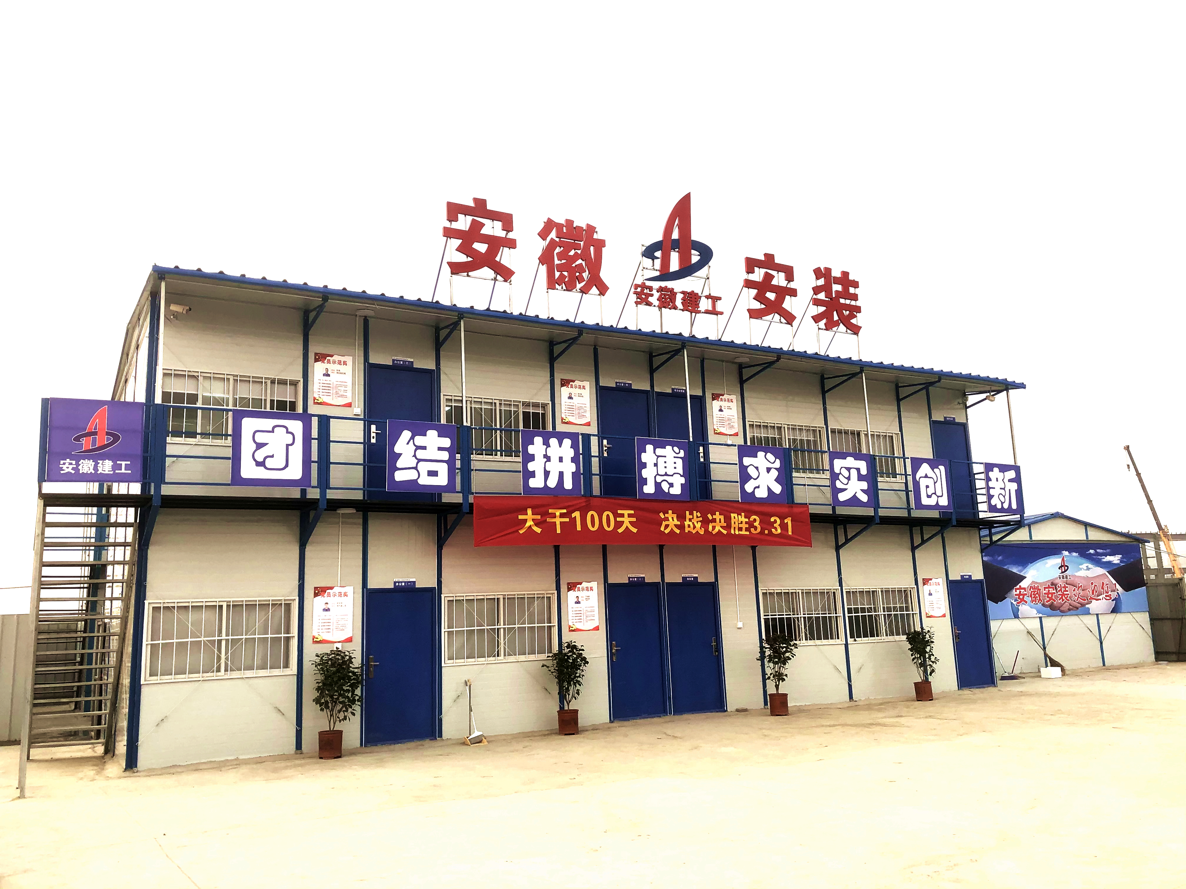 12天前,新項目部所在地還是一片荒地。如今,一排排錯落有致的活動板房,統(tǒng)一著裝的職工們忙碌的身影,房頂上閃亮的“安徽安裝”四個大字,獨具特色的企業(yè)文化宣傳標語,無不展示著廣大職工積極向上的精神風(fēng)貌和“團結(jié) 拼搏 求實 創(chuàng)新”的企業(yè)精神。