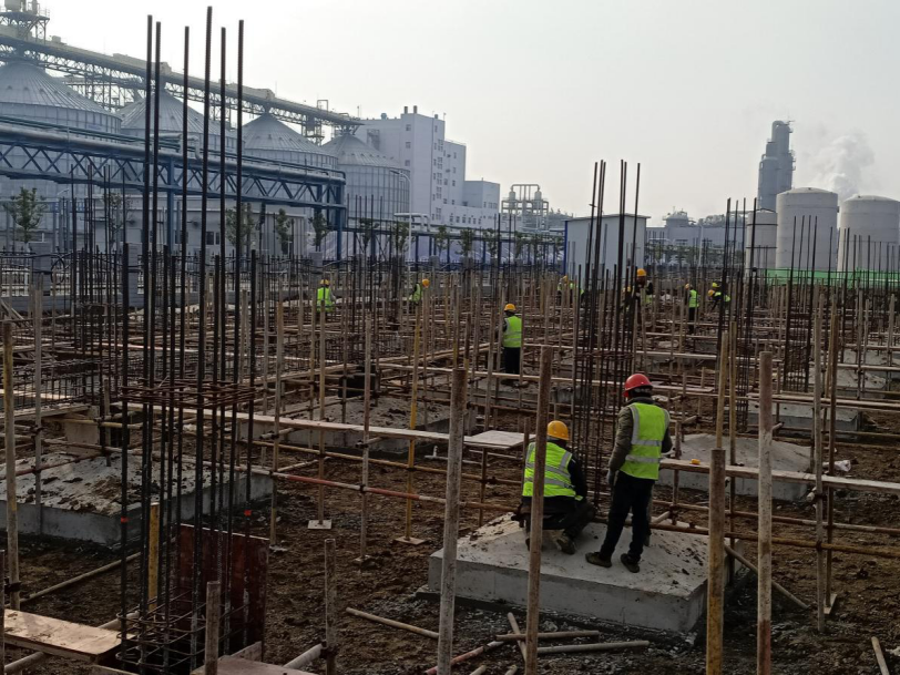 在安徽中糧30萬噸/ 年燃料乙醇搬遷改造項目施工現(xiàn)場,清晨雖然寒風瑟瑟,但施工現(xiàn)場卻是一片火熱,施工人員正在忙而不亂地加緊進行鋼結構安裝、墻體砌筑、基礎梁架體搭設等。熱火朝天的現(xiàn)場讓人們忽略了冬日的寒冷,項目執(zhí)行經(jīng)理徐德良說:“項目施工有著嚴謹?shù)倪M度安排,一環(huán)扣一環(huán),容不得半點懈怠,我們以元旦不休息的方式喜迎新年,目的就是要確保如期完成施工任務,交出一份滿意的答卷”。