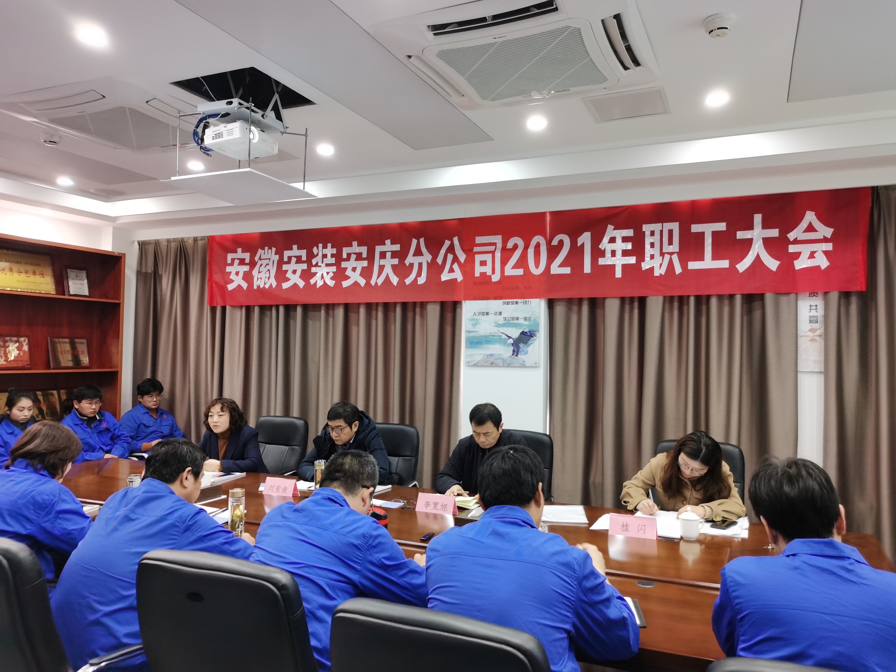 3月9日上午,安徽安裝公司安慶分公司召開2021年職工大會,公司副總經(jīng)理、安慶分公司聯(lián)系點(diǎn)領(lǐng)導(dǎo)劉安俊,紀(jì)委書記、工會主席李寬旭應(yīng)邀出席了大會,人力資源部經(jīng)理王敏及黨委辦公室相關(guān)人員,分公司班子成員及機(jī)關(guān)、項(xiàng)目部員工參加會議,會議由安慶分公司黨支部書記劉紅艷主持。