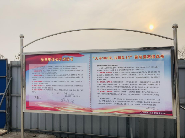 這是一場一開始就注定與時間賽跑的戰(zhàn)斗,這也是對安徽安裝蚌埠康寧項目部全體參戰(zhàn)人員攻堅克難、敢打能勝的全面檢驗。2020年12月8日,康寧項目部召開“大干100天 決戰(zhàn)決勝3.31”勞動競賽啟動大會,全面吹響大干快上的總號角。公司副總經(jīng)理高飛、劉安俊分別作動員講話,要求全體參建人員要凝心聚力、統(tǒng)一思想,全力以赴,嚴格按照“高標準起步,高質(zhì)量建設(shè)、高效率推進,高層次達標”的總要求,創(chuàng)新管理模式、集中優(yōu)勢資源、統(tǒng)籌推進各項工作,全力以赴建好項目,樹立企業(yè)良好形象。