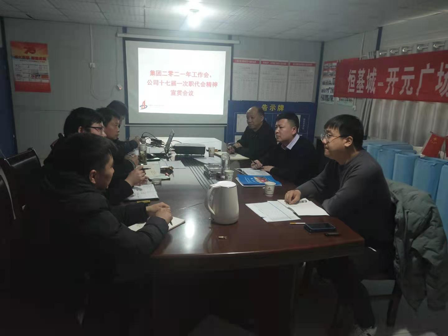 繼房建(裝飾)分公司2021年職工大會勝利召開后,分公司黨支部迅速行動,部署開展集團2021年度工作會及公司十七屆一次職代會精神宣講。3月16日至19日,分公司黨支部書記王偉帶領(lǐng)分公司宣講團先后奔赴分公司所在淮北、阜陽、定遠、合肥各在建項目,組織開展兩級會議精神集中宣講,各項目部全體管理人員參加了宣講會議。