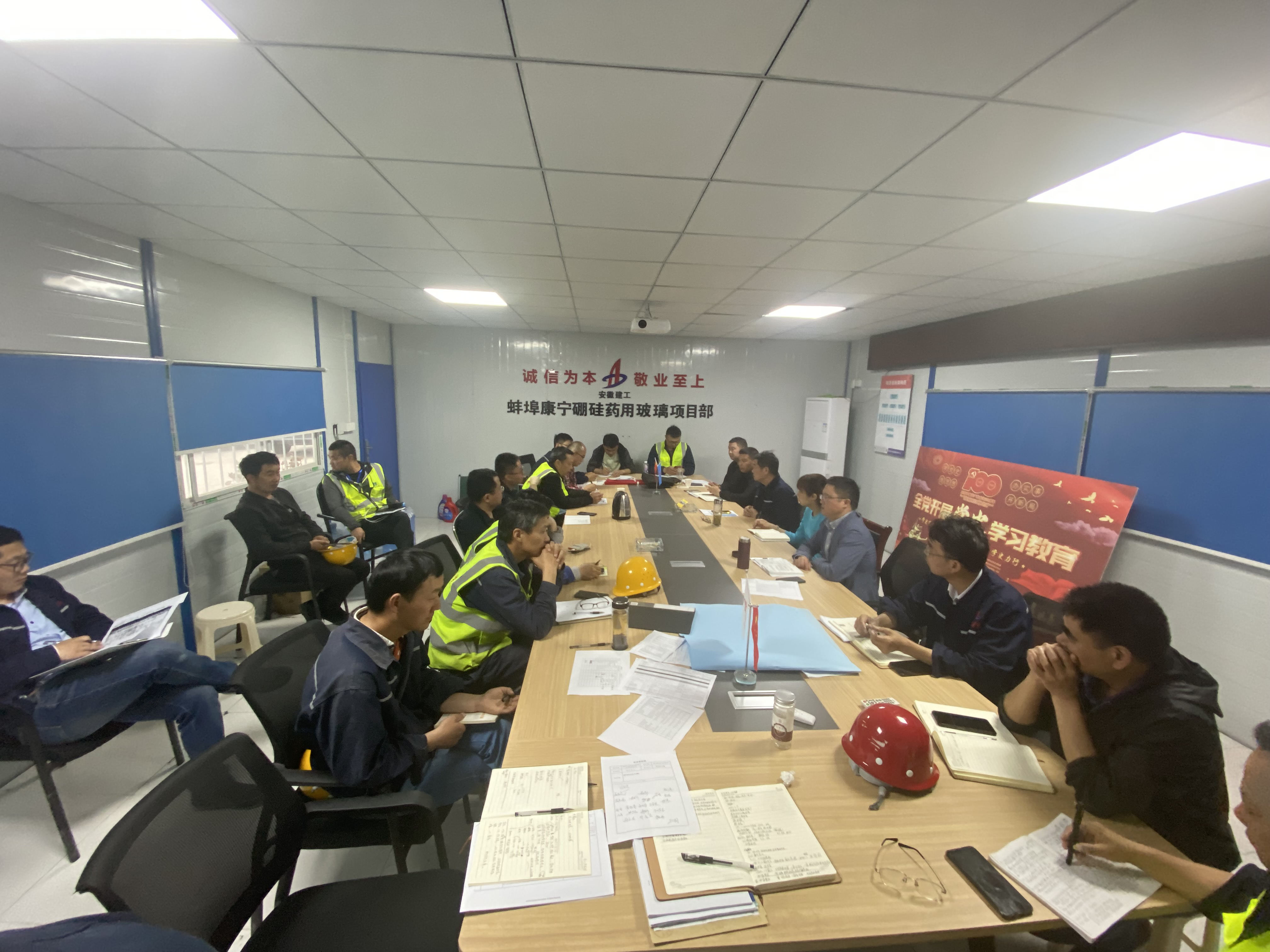 5月18日,雖然已是晚間八點(diǎn)多,但是位于蚌埠市中環(huán)線南、中糧大道以西的康寧藥用玻璃管項(xiàng)目現(xiàn)場(chǎng)到處是一片繁忙的景象。項(xiàng)目部會(huì)議室內(nèi)燈火通明,全體參戰(zhàn)人員正在召開(kāi)項(xiàng)目協(xié)調(diào)推進(jìn)會(huì),而在不遠(yuǎn)處的施工現(xiàn)場(chǎng),機(jī)器設(shè)備聲轟鳴,百十名施工人員在各自的崗位上緊張而有序地忙碌著。