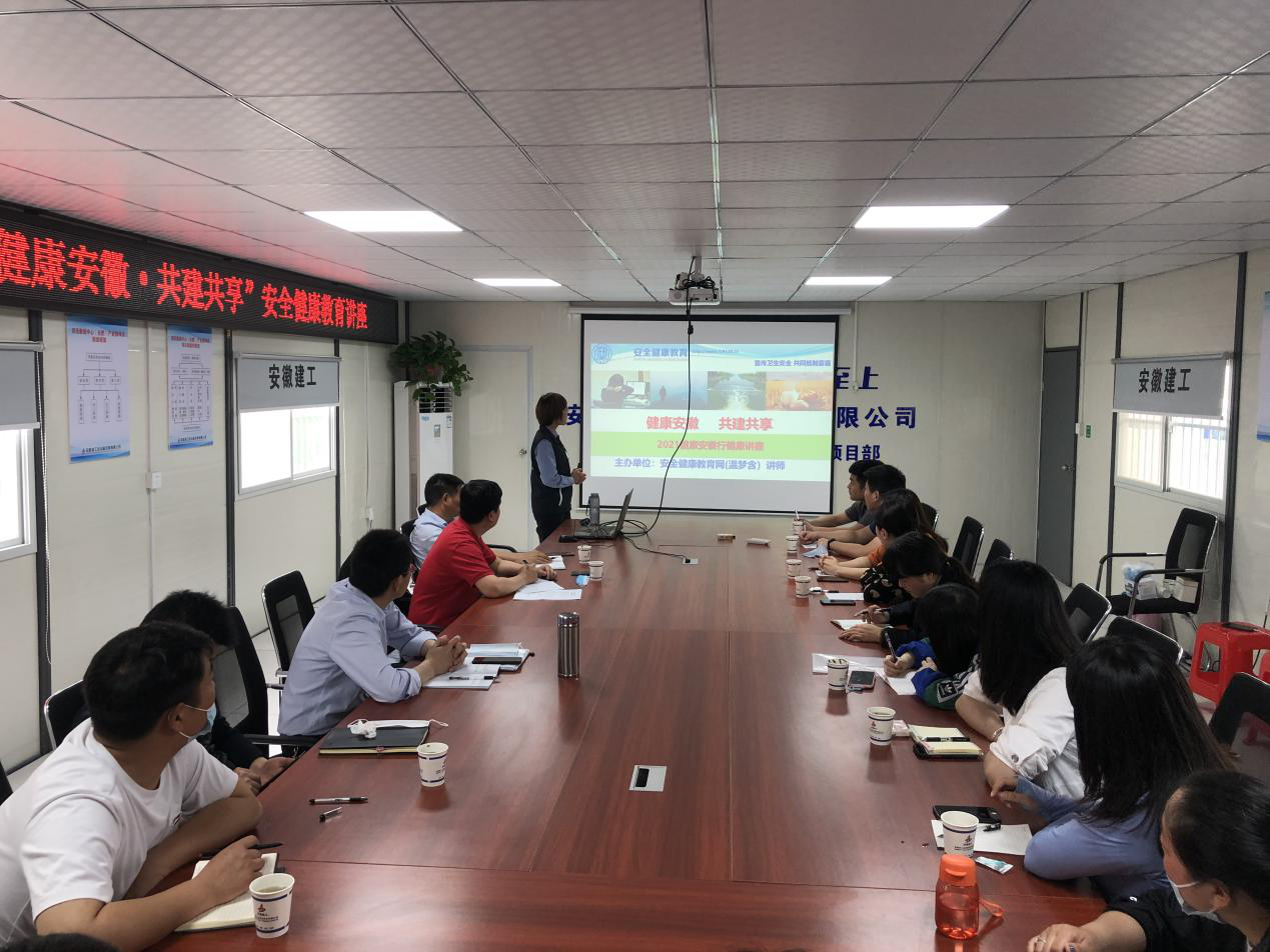 為積極響應(yīng)安徽省委有關(guān)部署,加強(qiáng)健康教育,提升健康防護(hù)和掌握必備的急救能力,倡導(dǎo)科學(xué)文明健康的生活方式,進(jìn)一步增強(qiáng)項(xiàng)目管理人員的安全意識(shí),提高從業(yè)人員的安全技能,5月21日下午,公司安全管理部副經(jīng)理蔣秀正攜安全健康教育網(wǎng)安徽站宣教科主任溫夢(mèng)含赴房建(裝飾)分公司潤(rùn)迅數(shù)據(jù)中心(合肥)產(chǎn)業(yè)園項(xiàng)目組織開(kāi)展安全健康教育講座。分公司黨支部書(shū)記王偉、副經(jīng)理王傳林,分公司機(jī)關(guān)人員及項(xiàng)目全體職工參加了講座。