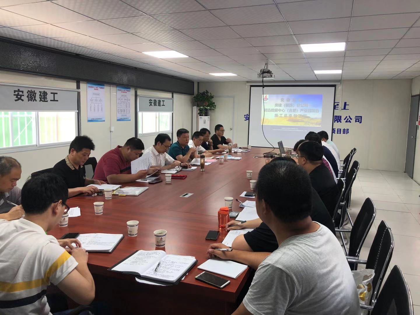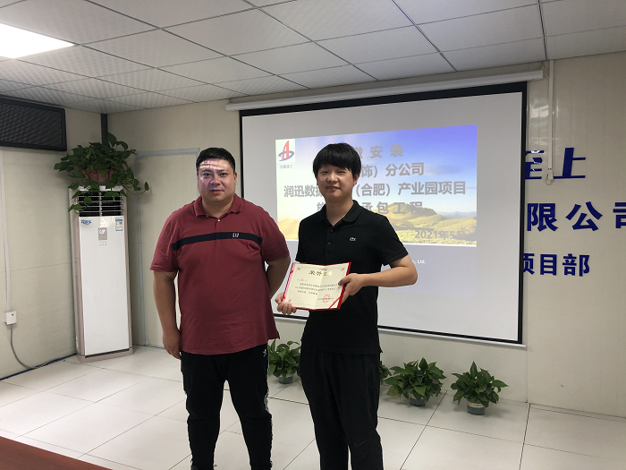 5月31日下午,房建(裝飾)分公司在潤迅數(shù)據(jù)中心合肥產(chǎn)業(yè)園項目部召開分公司5月份生產(chǎn)、安全、經(jīng)營工作會,公司工程管理部經(jīng)理龍海健、安全部副經(jīng)理蔣秀正,分公司領(lǐng)導(dǎo)班子成員、部門負責(zé)人、項目經(jīng)理、工程部全體人員參加了會議,會議由分公司黨支部書記王偉主持。