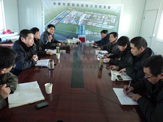 王總一行首先聽取了安徽華塑項目部關(guān)于質(zhì)量、安全文明、施工進度、工作目標和下一步工作計劃的匯報。王總一行對安徽華塑項目部在開工短短兩個月內(nèi)取得的成績給予充分肯定。王總特別指出,在工期緊、任務(wù)重、困難大的情況下,項目部一定要思想上重視,制定科學合理的方案,與施工各方進行高效溝通,搶工期、保質(zhì)量、展風采,為后續(xù)工程的承接創(chuàng)造有利條件。