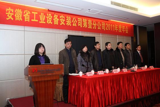 2011年1月18日上午9時(shí),安徽省工業(yè)設(shè)備安裝公司第壹分公司2011年度年會在浙商瑞雅國際大酒店2樓會議廳隆重舉行,總經(jīng)理王軍邦、黨委書記戴樹明、副總經(jīng)理劉安俊等一行蒞臨會議。