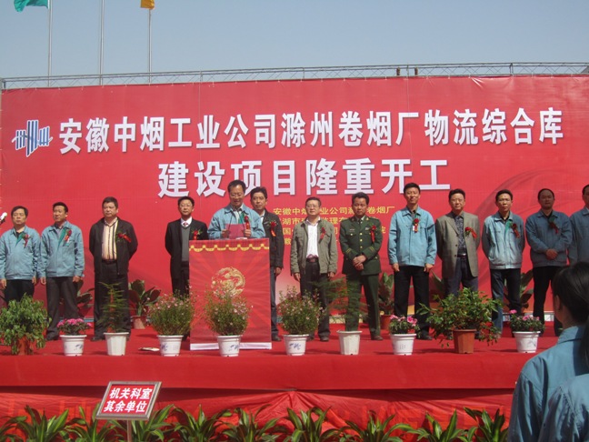 4月18日上午,陽光明媚。由公司滁州分公司承建的滁州卷煙廠物流綜合庫工程開工典禮隆重舉行。滁州卷煙廠主要領(lǐng)導(dǎo)及當(dāng)?shù)刂鞴懿块T負(fù)責(zé)人蒞臨現(xiàn)場(chǎng),公司總經(jīng)理王軍邦、黨委書記戴樹明應(yīng)邀出席儀式,滁州分公司全體管理人員出席慶典,戴書記代表施工單位祝賀工程隆重開工。滁州卷煙廠物流工程的順利開工,標(biāo)志著公司與安徽中煙的良好合作關(guān)系得到進(jìn)一步延續(xù)和鞏固。